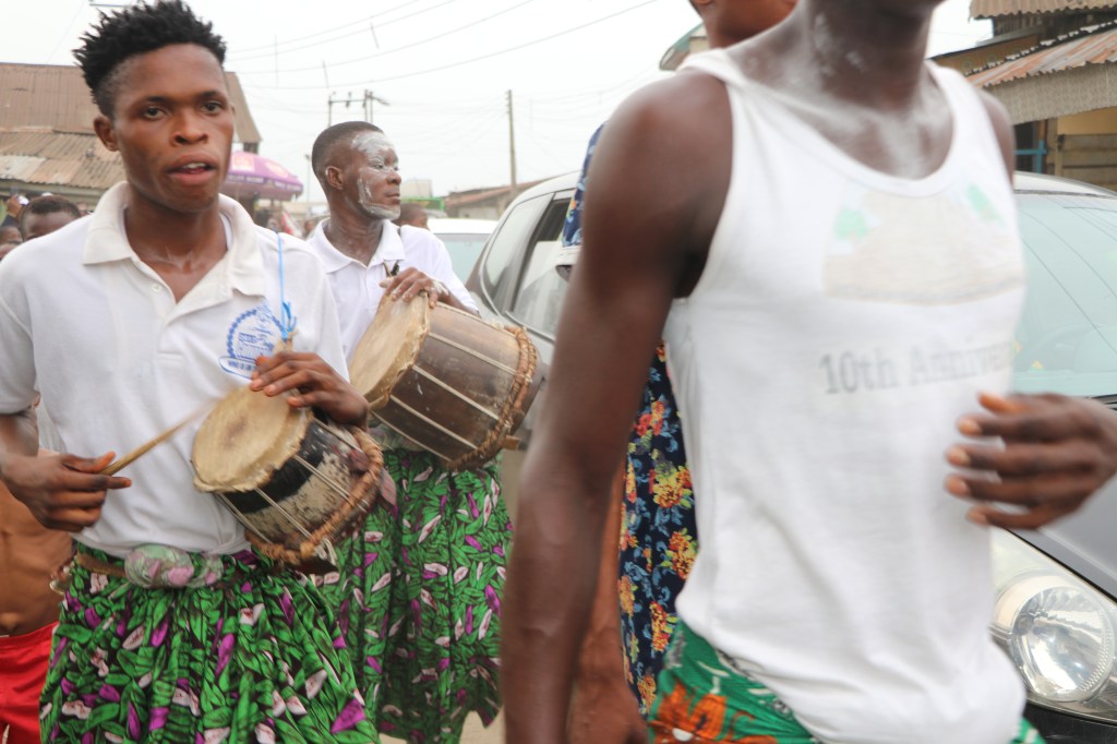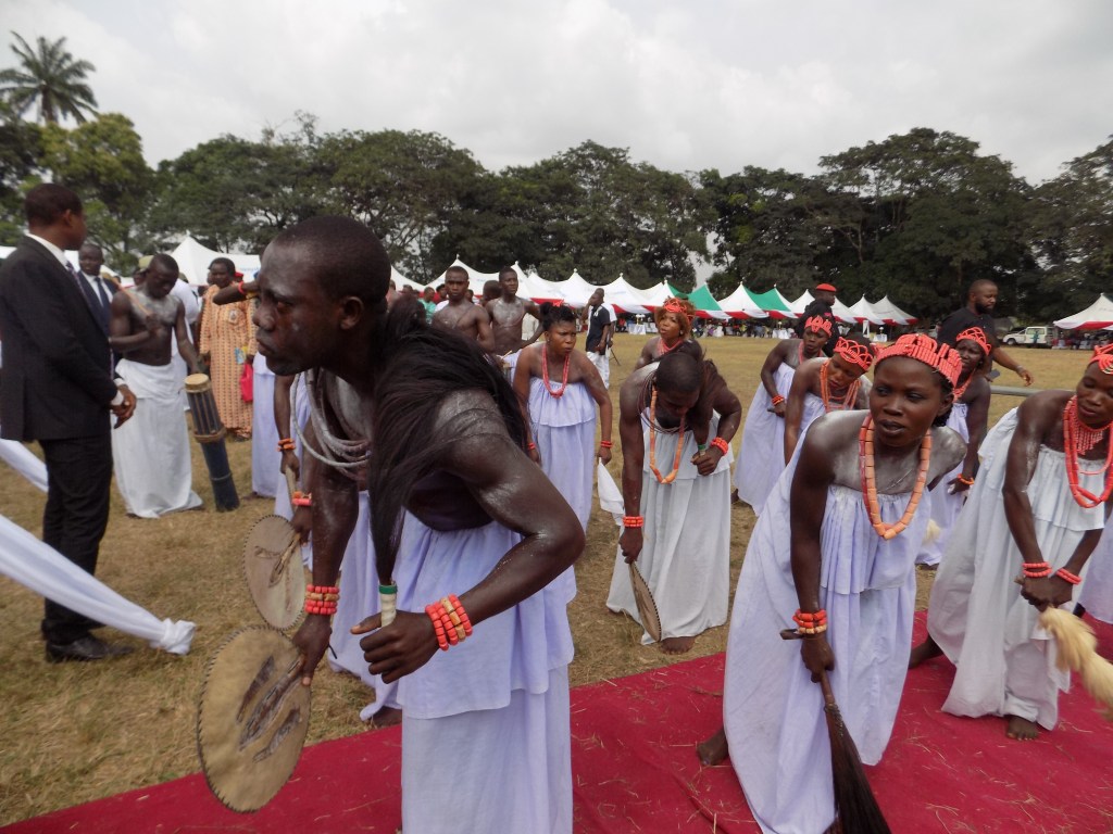Ima dancers of Urhobo displaying their acrobatic movements, beads fans and other attires
