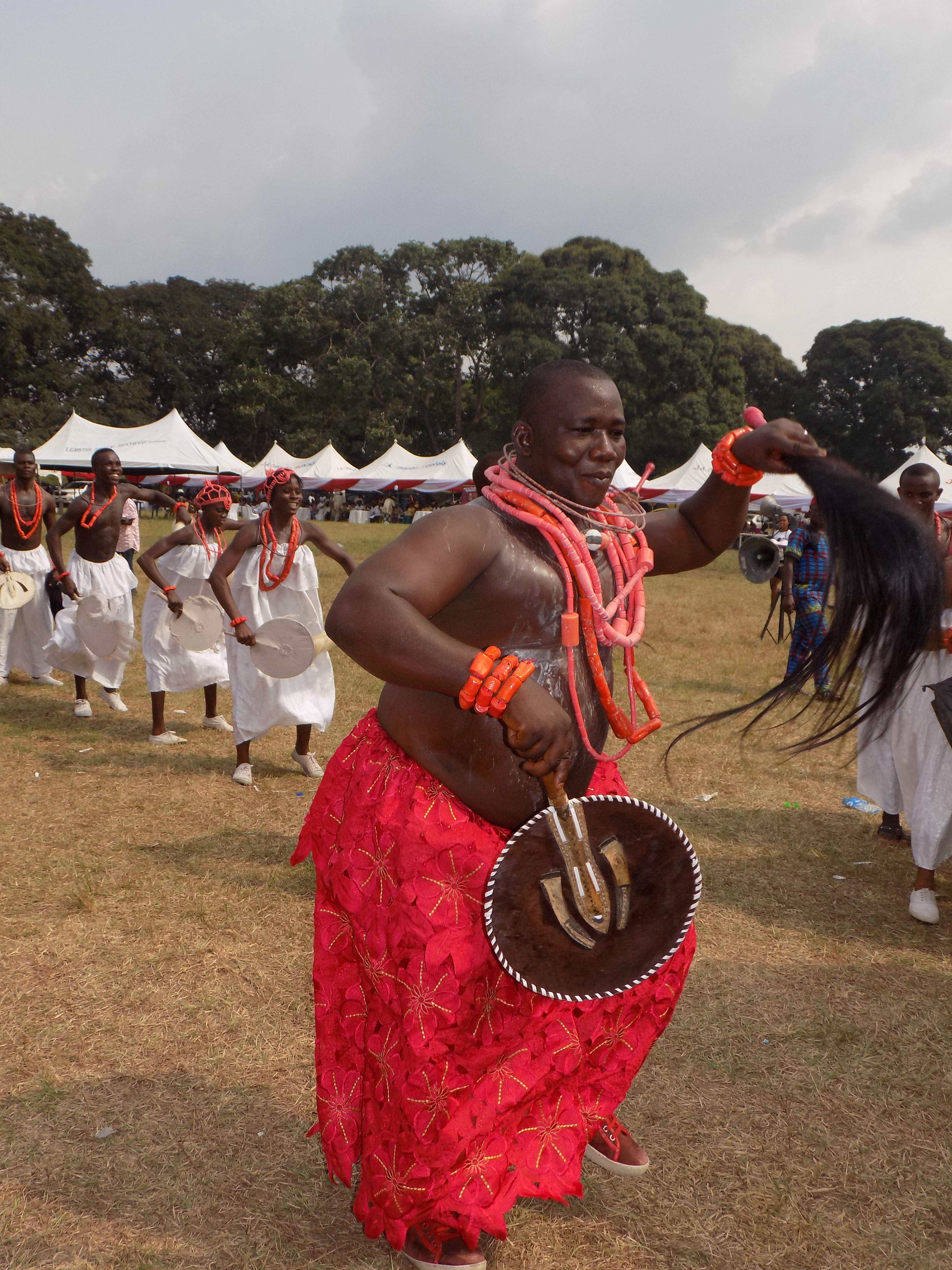 Ima dancers of Urhobo displaying their acrobatic movements, beads fans and other attires